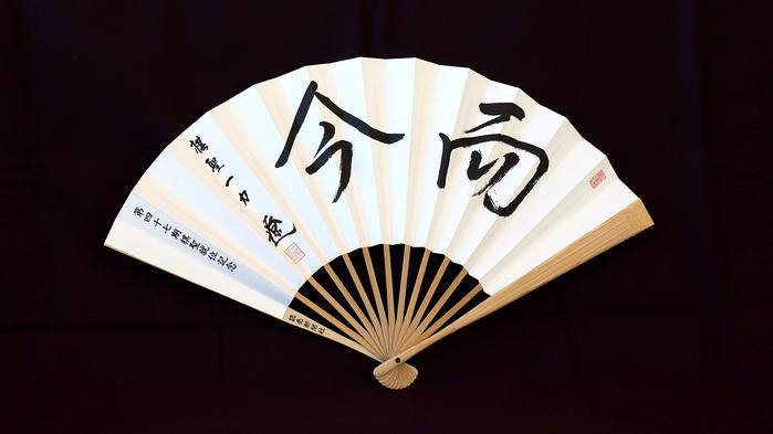 - (写真の扇子は第47期棋聖就任式の際に作られたものです)