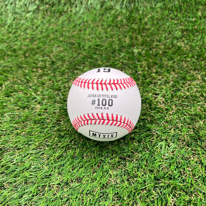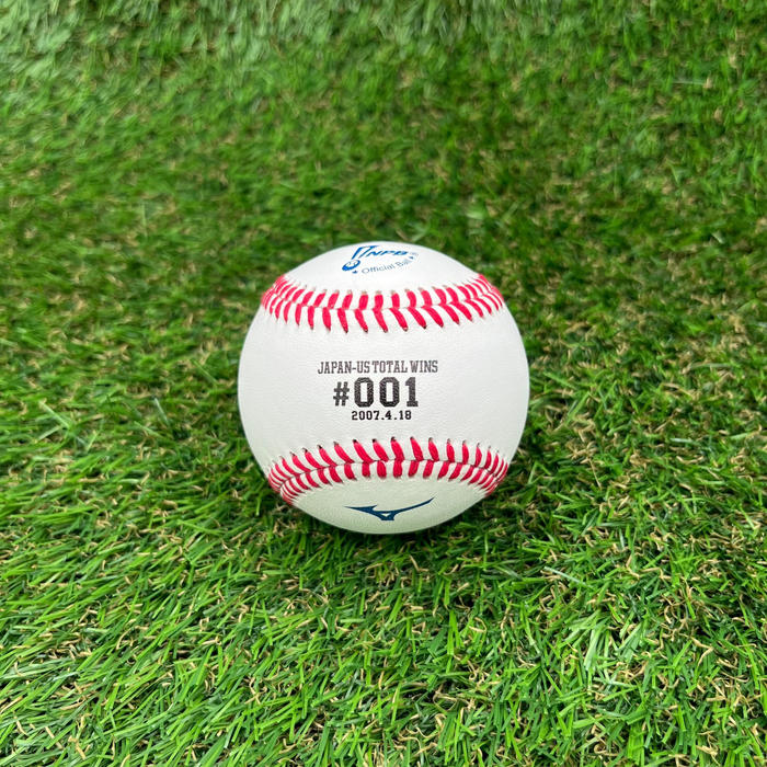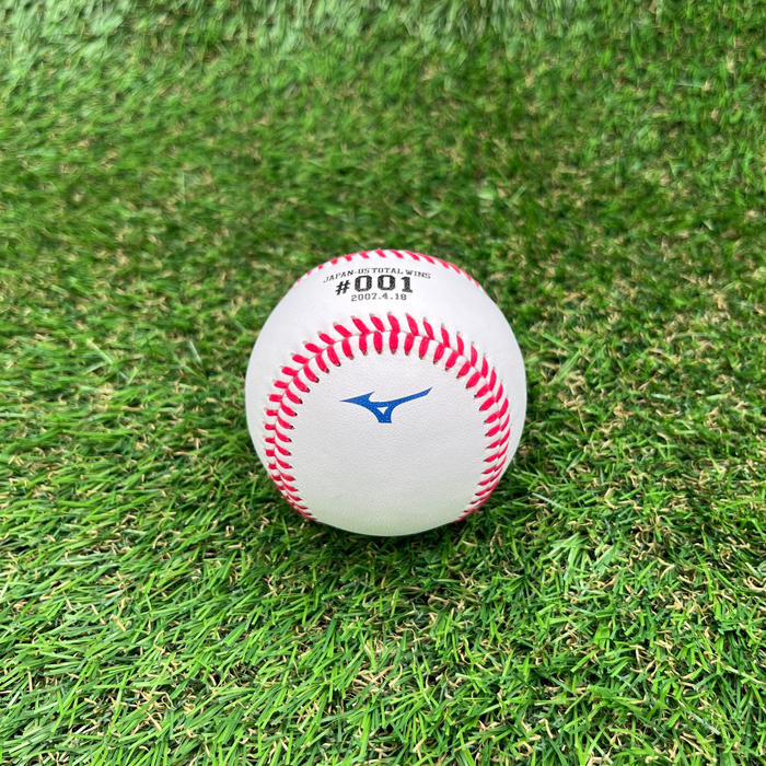 楽天イーグルス、読売ジャイアンツでの勝利記念ボールは、NPBの公式球。ニューヨーク・ヤンキースでの勝利記念ボールは、MLB公式球です。たとえば、#050は楽天イーグルス所属時代の達成のためNPB公式球、#100はニューヨーク・ヤンキース所属時代のためMLB公式球となります。 - ①#001(2007年4月18日)
